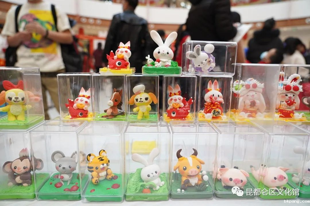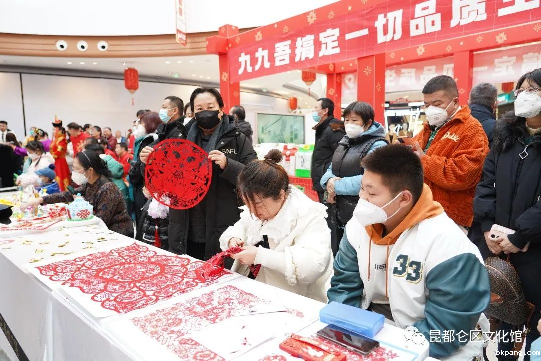 在非遗手工艺展示区,文化馆组织邀请了面塑、剪纸等非遗传承人进行现场展示,传承人一边制作和展示作品。色彩丰富的面塑、精美的剪纸等非遗作品吸引众多群众驻足观看并与传承人进行互动。