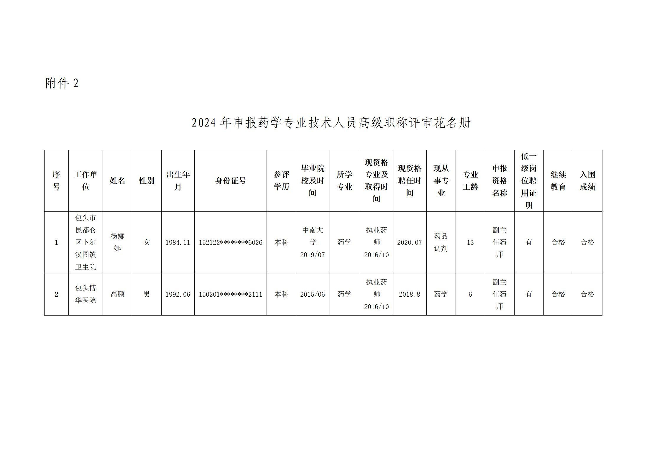 2.2024年申报药学专业技术人员高级职称评审花名册