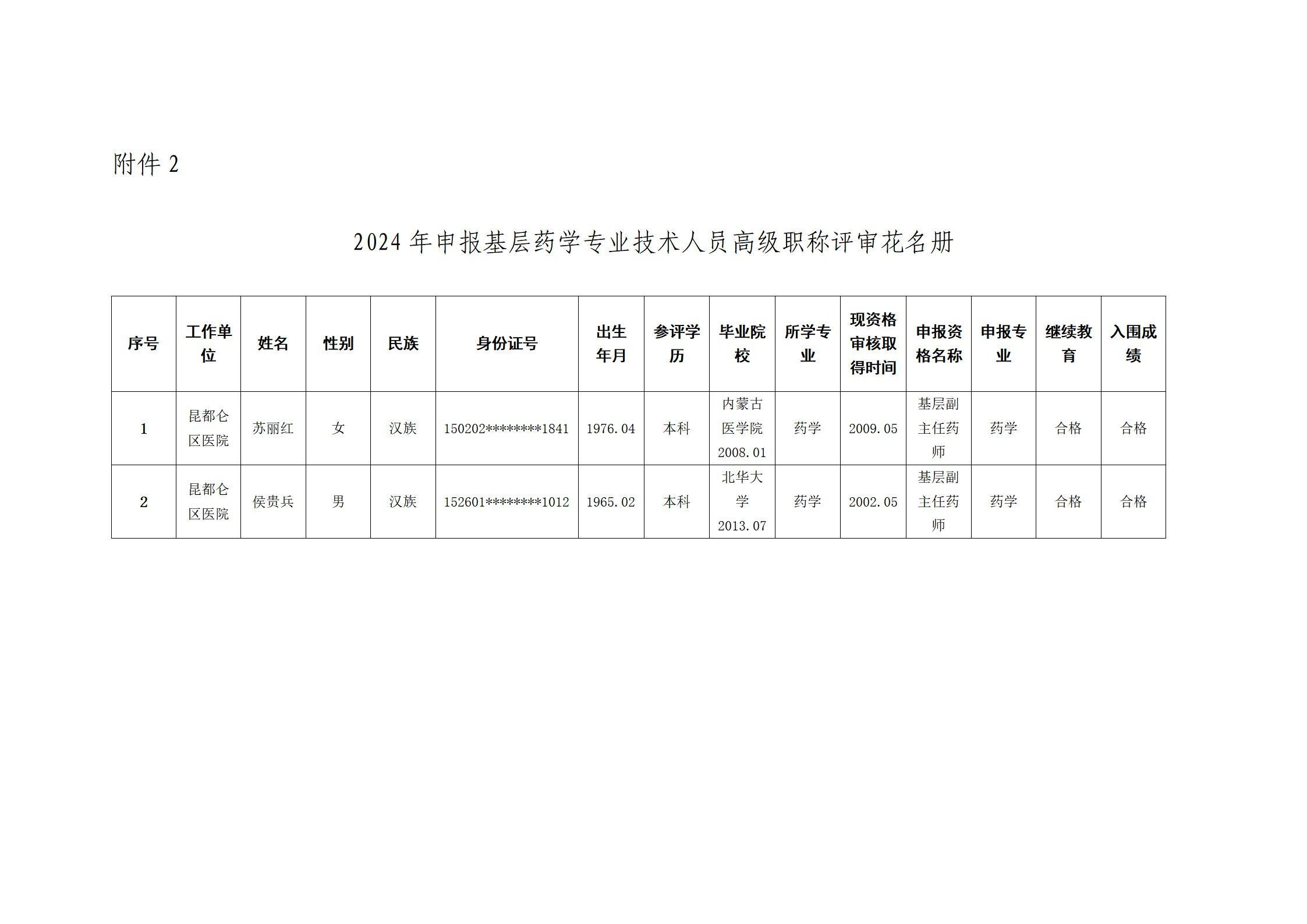 2.2024年申报基层药学专业技术人员高级职称评审花名册