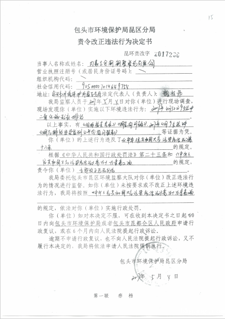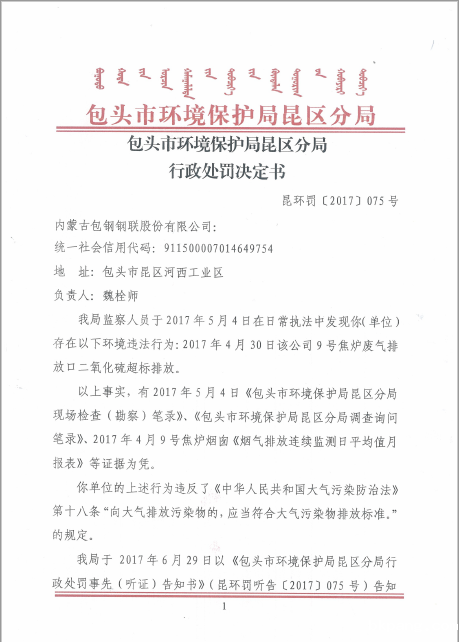 昆区环保分局行政处罚案件2017075-昆都仑区人民政府