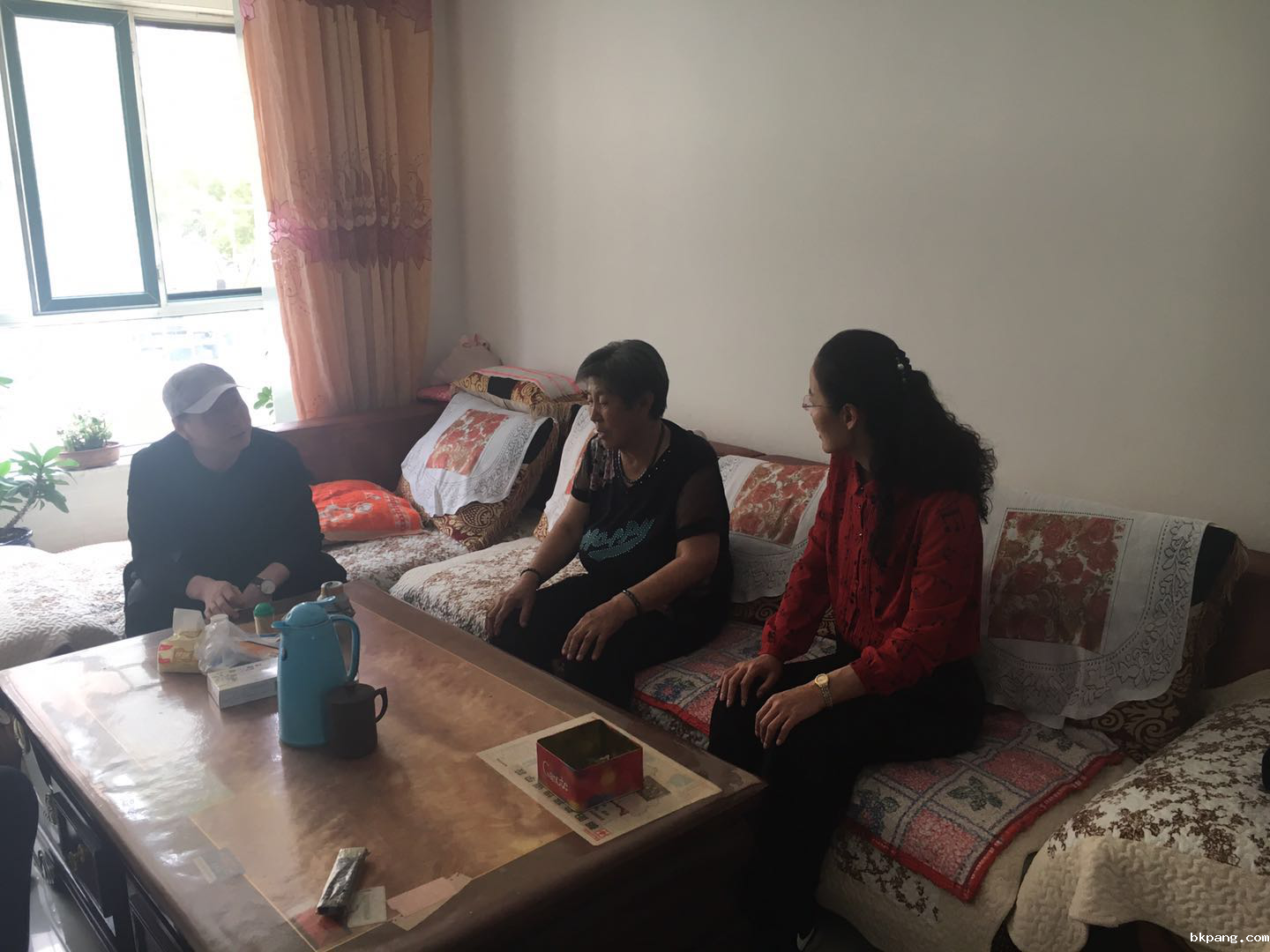 阿尔丁街道办事处书记王金芬与困难户郝忠厚(已故)妻子亲切交谈
