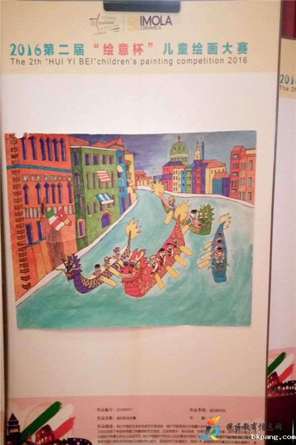 11月26日,在北京“意大利驻华大使馆”举行的第二届“绘意杯”儿童绘画大赛颁奖典礼上,来自包头市特殊教育学校五年级学生白缘的绘画作品《威尼斯龙舟赛》荣获一等奖。同时包头市特殊教育学校被主办方授予优秀组织机构奖。白缘获得了由主办方提供的北京飞往威尼斯的往返机票一张。