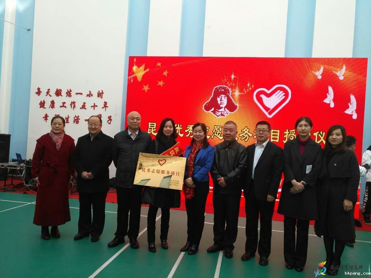 在全国学雷锋志愿服务日即将到来之际,昆区团委、民政局举办了优秀志愿服务项目评选表彰活动。钢铁大街第四小学持续四年为西藏贫困儿童捐资助学在此次评选中获优秀志愿服务项目。昆区政府副区长任婉如,政府副区长、民政局局长李长茂,政协副主席王巍,团委书记王彤,教育局副局长孟庆春,民政局副局长袁利华等领导参加了此次活动,并为获奖单位颁奖。