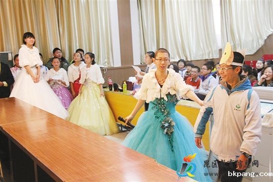 包钢三中校本课程之英语角。图为初二七班表演的《白雪公主:公主舞会》