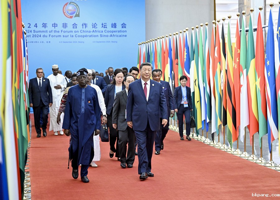9月5日上午,国家主席习近平在北京人民大会堂出席中非合作论坛北京峰会开幕式并发表题为《携手推进现代化,共筑命运共同体》的主旨讲话。新华社记者 鞠鹏 摄